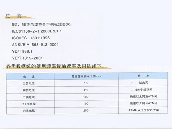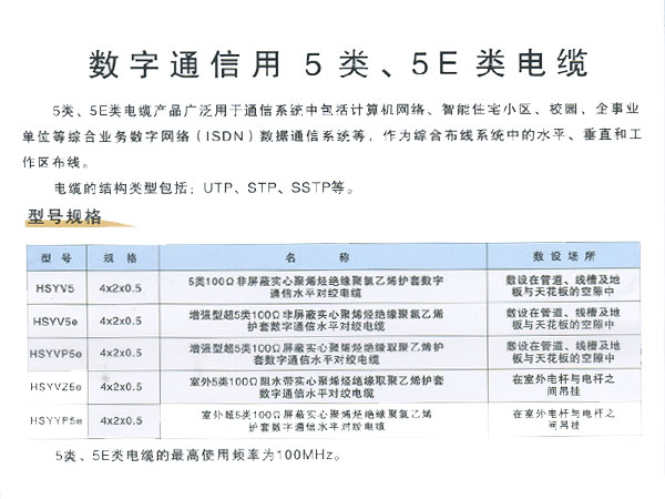 數(shù)字通信用5類、5E類電纜